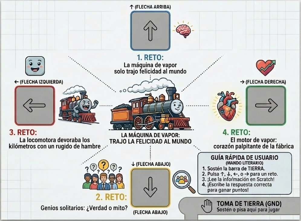- ¿Cada flecha de dirección lanza un reto literario diferente asociado a la Revolución Industrial? (Sí/No)