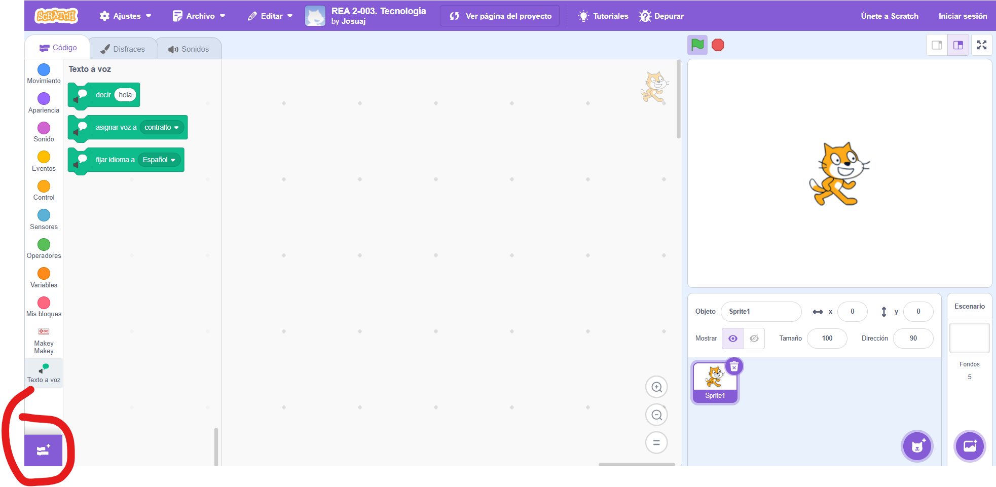 - Abrir o crear el proyecto: Accede a Scratch y abre un proyecto existente o crea uno nuevo. Asegúrate de estar dentro del área de programación antes de continuar.